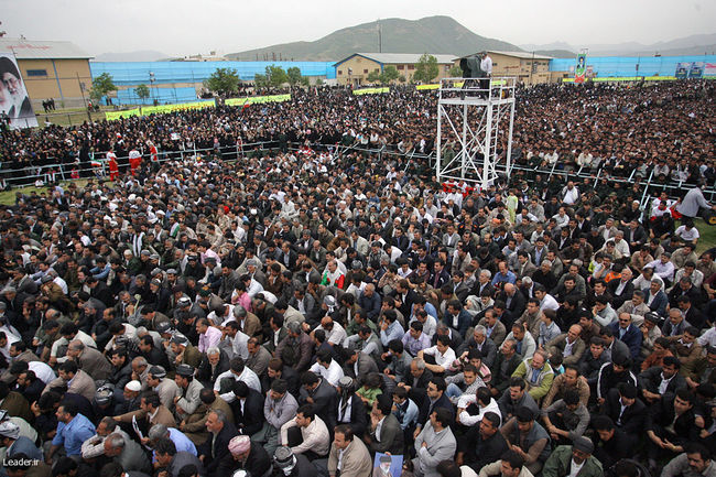 مریوان کے زاکرس کھیل اسٹیڈیم میں رہبر معظم انقلاب اسلامی نے لاکھوں افراد کے اجتماع سے خطاب کرتے ہوئے فرمایا: وہ اجانب جو ایرانی قوم کی تحقیر و ذلت کی تلاش و کوشش میں ہیں ان کے ساتھ مقابلہ قومی عزت و وقار کا باعث ہے ایران کے دشمن ایرانی قوم کی عظمت وپیشرفت و ترقی کو اپنے لئے مفید نہیں سمجھتے ہیں لہذا دشمن سے وابستگی کے تمام نسخے قومی مفادات اور ملک تعمیر و ترقی اور استقلال کے بالکل خلاف ہیں۔