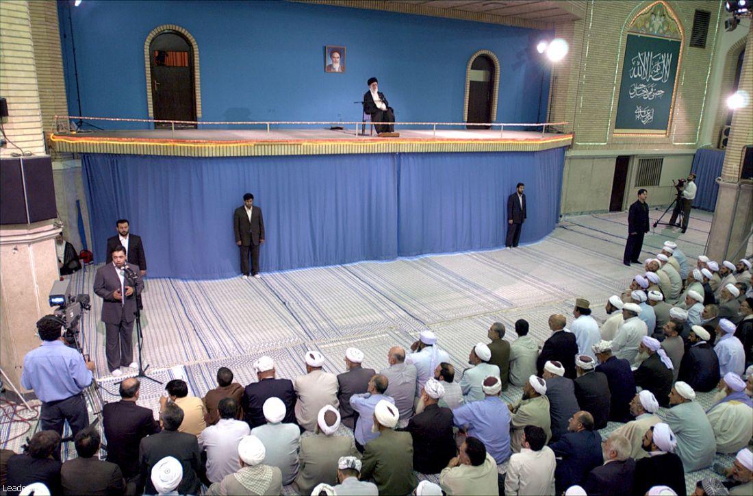The Islamic Revolution Leader, addressing the huge public gathering of different people strata and Shiite and Sunni scholars , then elaborated on the meaning of Jihad and said," Jihad is not limited to the wartime, it also covers every step taken by Muslims to promote the Islamic Ummah's scientific and religious status as well as unity among Muslims and confrontation to inner temptations."