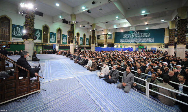 Peygamber efendimiz Hz. Resulullah (sav)'in sevgili kızı Hz. Fatıma –sa-ın şehadet yıl dönümü yas merasimlerinin 4. gecesi rahmetli İmam Humeyni hüseyniyesinde, İslam inkılabı rehberinin huzurunda düzenlendi.